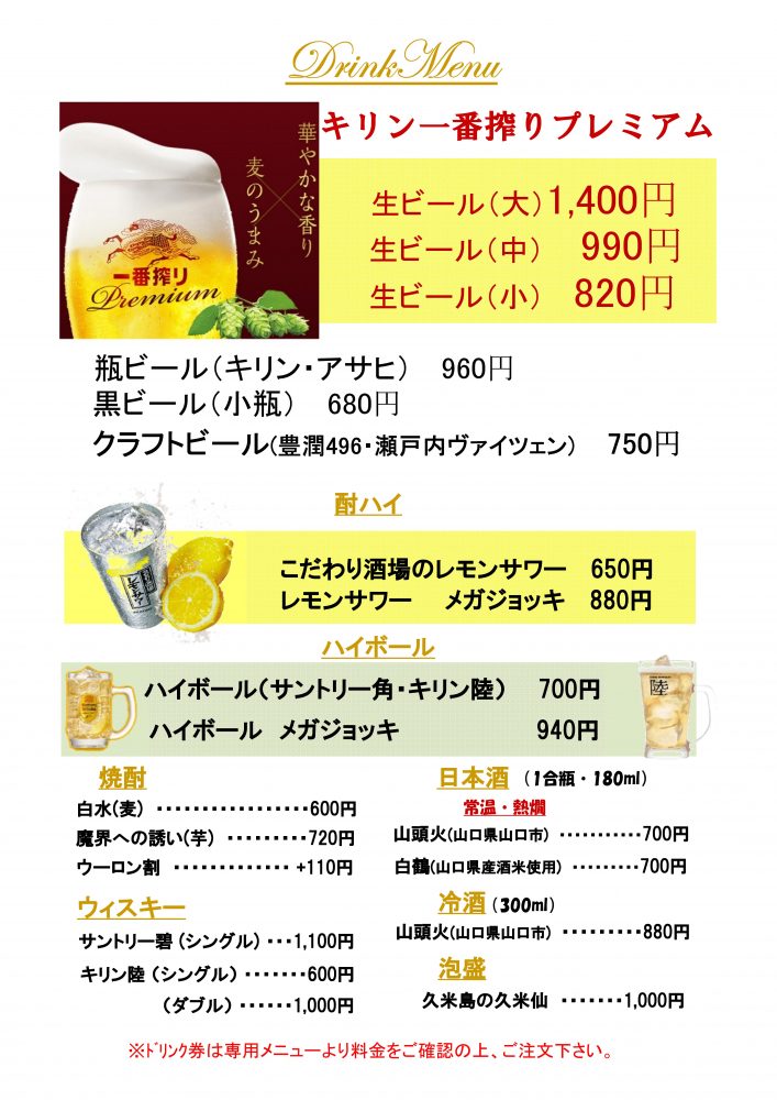 ドリンクメニュー